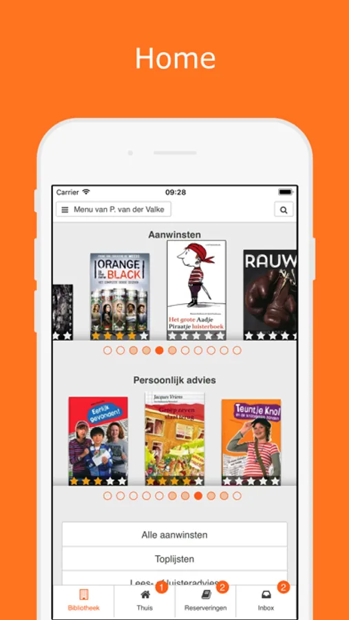 + Overzichten: Eerder geleende titels, Mijn reserveringen, Mijn Verlanglijst. De laatste twee kunt u zelf via de app bijwerken.