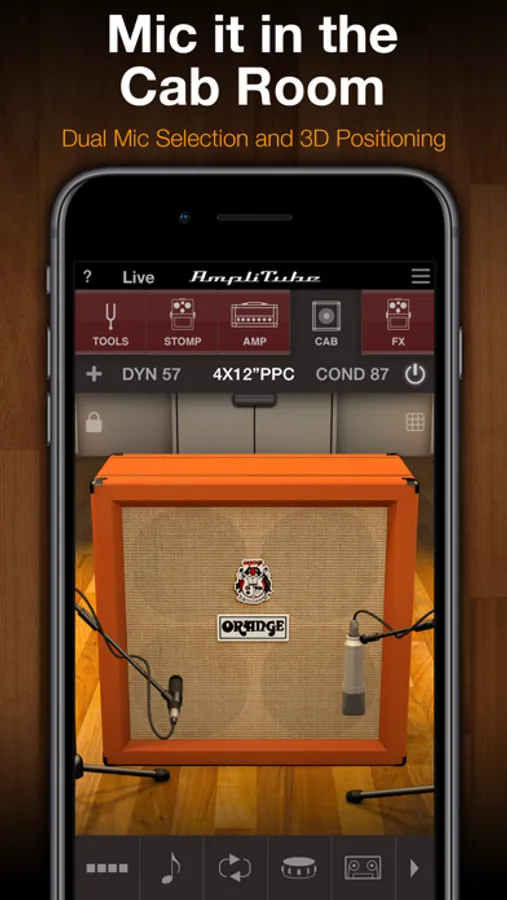 Thanks to AmpliTube's Cab Room, you’ll feel like you’re in your own professional recording studio. Mic your cabinets in full 3D in a beautifully rendered virtual studio environment with 2 iconic guitar mics (expandable to 16 mic models available via in-app purchase).