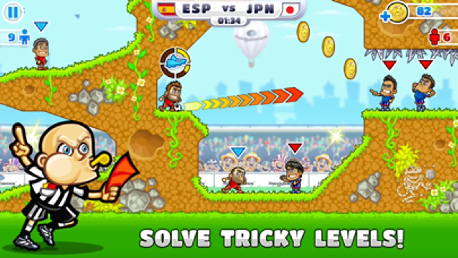 Charge up your soccer ball, calculate power and shoot down every rival in your way! Pass, shoot and destroy your opponents in brilliant battles on the field. Plan effective passes, take down heavy rowdies and smash the goalkeeper to win the match!