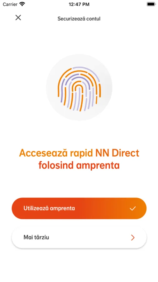 Activarea contului se face scurt și de la distanță, iar pentru autentificare poți alege varianta clasică (email și parolă) sau, și mai simplu, cu recunoaștere facială sau amprentă digitală.