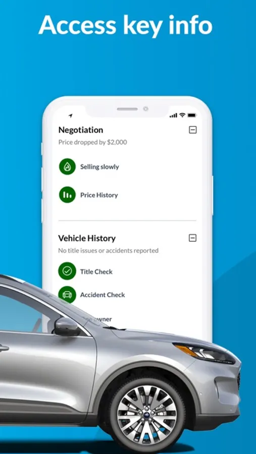 Get free access to key info like accident history, days on lot, number of owners, and price changes—all in one place. No digging necessary.