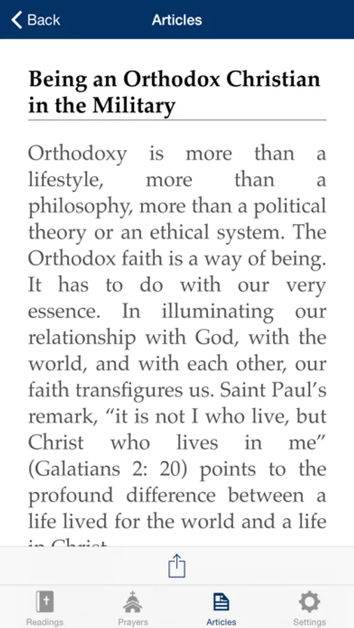 The free Daily Readings: Military Edition app also includes all of the great features from the original Daily Readings Lite app. It's an easy way to access the day's Scripture readings, saints, and fasting guidelines as prescribed by the Lectionary of the Greek Orthodox Church.