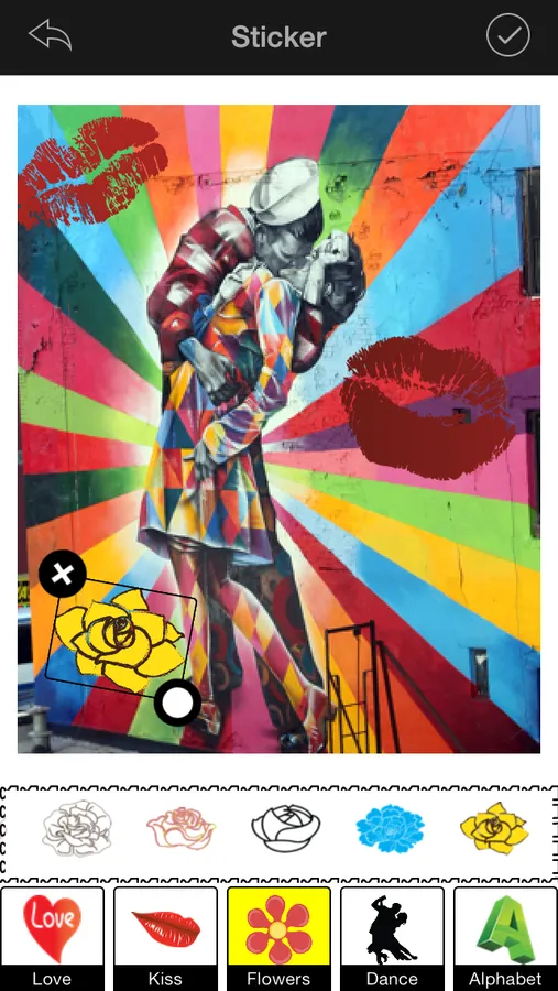 Add unlimited lovely stickers to your photos easily. Select, scale, rotate and send quickly.