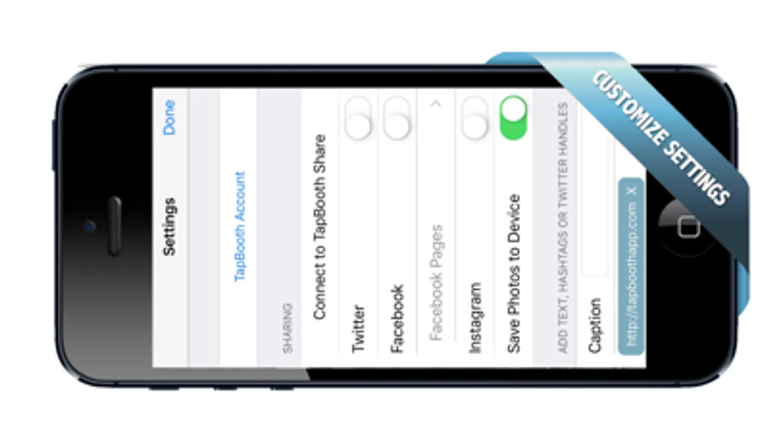 A TapBooth session can be setup to use hashtags, at signs (@) and any other text or URL links.