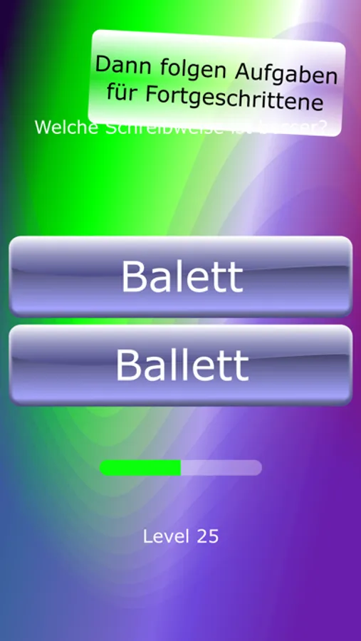 Auf den oberen Levels können selbst Fortgeschrittene und Erwachsene noch dazulernen. Oder wissen Sie zweifelsfrei Bescheid, ob man „Biwak“ oder „Biwack“, „Kintop“ oder „Kintopp“, „Schrapnel“ oder „Schrapnell“ schreibt?