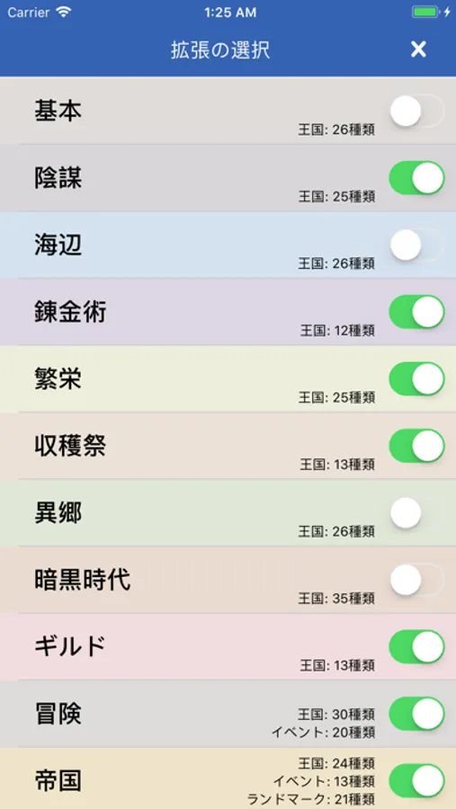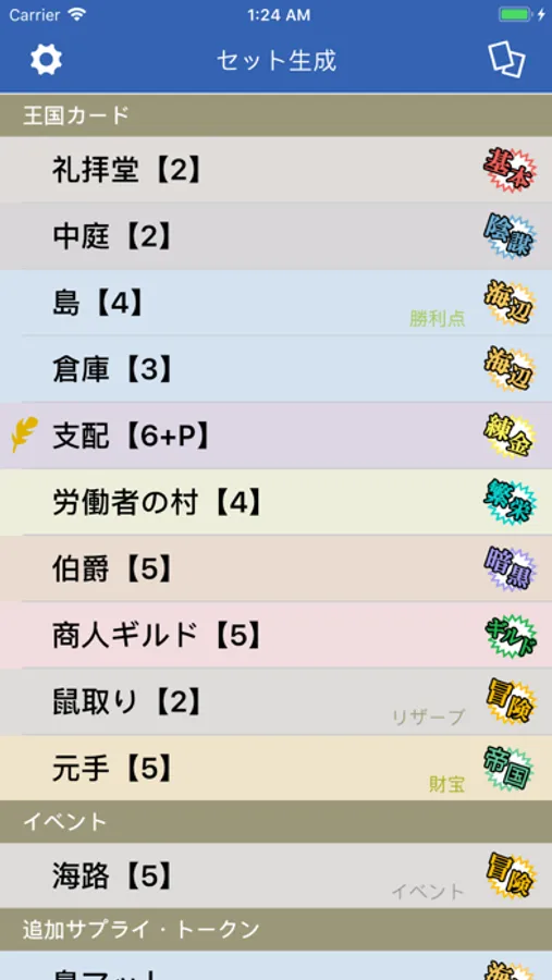 「ドミニオン」のサプライをランダム生成できるアプリです