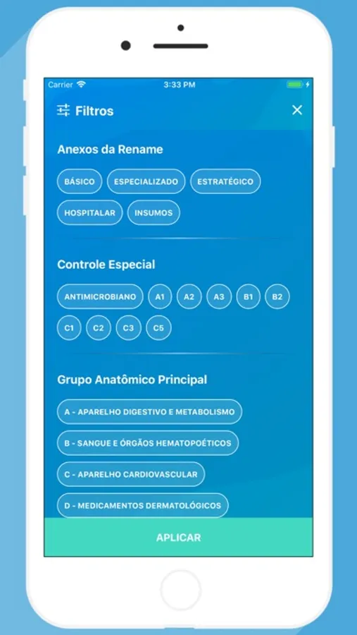 Otimize as suas buscas utilizando os filtros de anexos da Rename, Controle Especial, Grupo Anatômico Principal e medicamento com genérico.