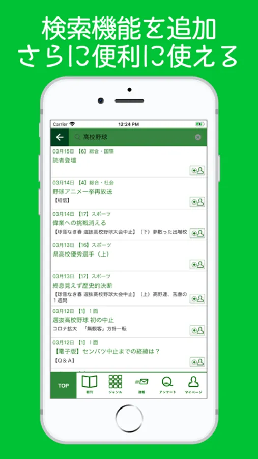 取引先の会社名や、子どもの通う学校名、好きなスポーツチーム、気になる商品など、好きなキーワードを登録することができます。朝刊にそのキーワードに関する記事が載っていれば、朝、あなたのスマホに「ピピッ」とお知らせ。