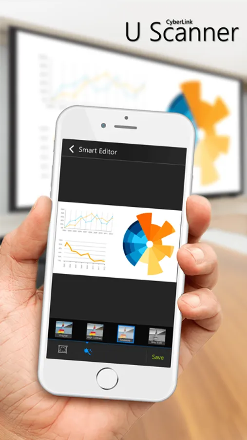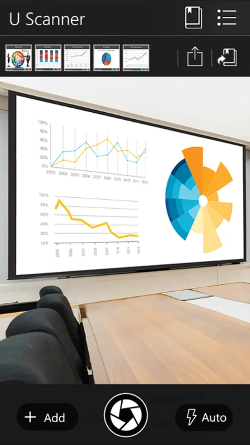 Turning live presentation screens or keynotes into clear PDF documents is easy with U Scanner’s intelligent edge correction and image enhancement technology. Photos of presentation screens are isolated, selected, and then straightened and enhanced for a clean high-quality result. Multiple photos can be saved in a single PDF document.