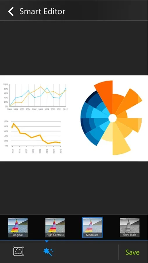 The powerful camera app for your phone and tablet intelligently isolates, and precisely selects, the important areas in your photos, then instantly corrects the perspective and enhances image quality for clear, legible results.