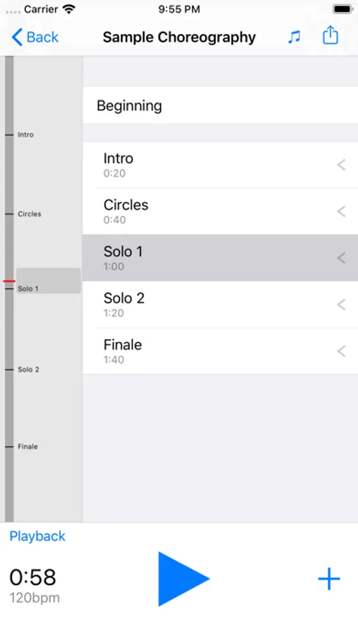 When you rehearse, you often need to play part of a piece of music over and over again, and you need to be able to quickly jump to important points in the piece. DanceMaster is optimized to help you easily break down, practice, memorize, and teach choreographies.