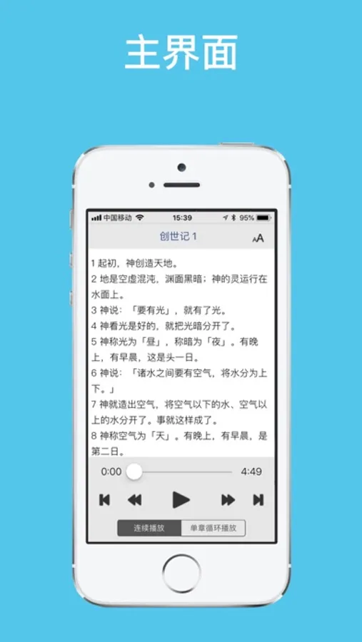 本圣经软件包含全本圣经(中文和合本)的朗读读音和文本,可以方便地播放、聆听和阅读。