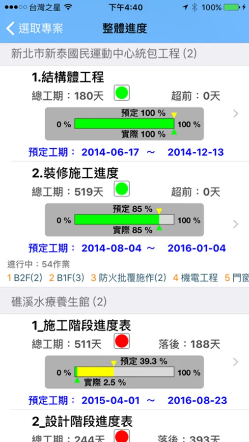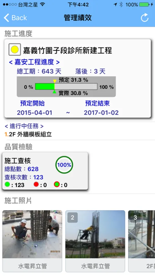 6. 進度管理 - 里程碑, 設計進度, 施工進度, 施工照片, 繪圖進度, 圖說送審, 材料送審, 採購進度, 組件生產