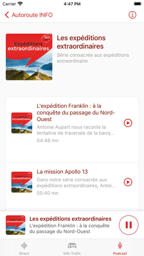 Vous pourrez aussi écouter le dernier point info trafic diffusé et des podcasts avec une fonction « autour de moi » vous permettant de découvrir des lieux touristiques, des départements, des régions… à proximité de votre parcours !