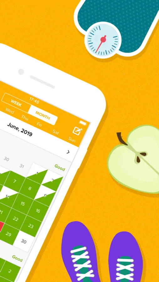 5***** - “This app keeps me on track... It takes about 21 days to break a habit or form a new one…see your progress by the week and by the month.”