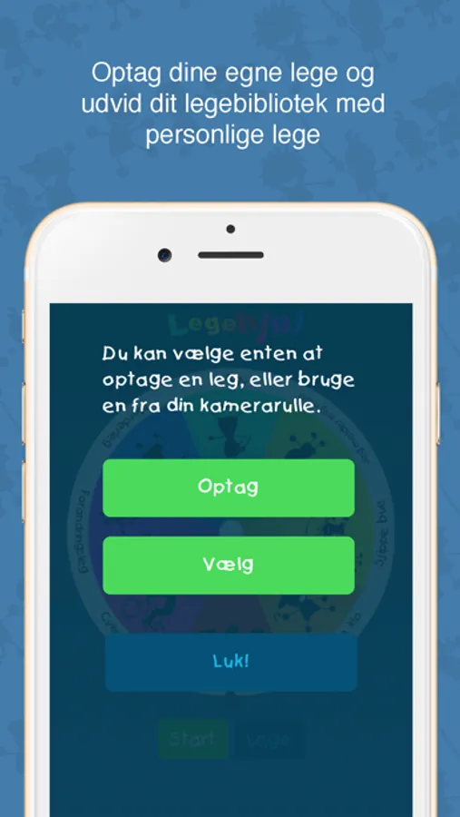 Find inspiration til f.eks. Cykellege, lege med kopper og meget mere. I appen har du også selv mulighed for at optage og uploade dine egne lege. Med denne funktion kan du nemt gøre appen mere personlig.