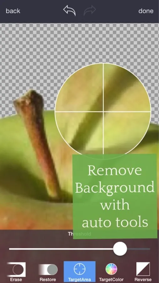 Just touch where you want to remove. "Target" function removes the area of similar color automatically.