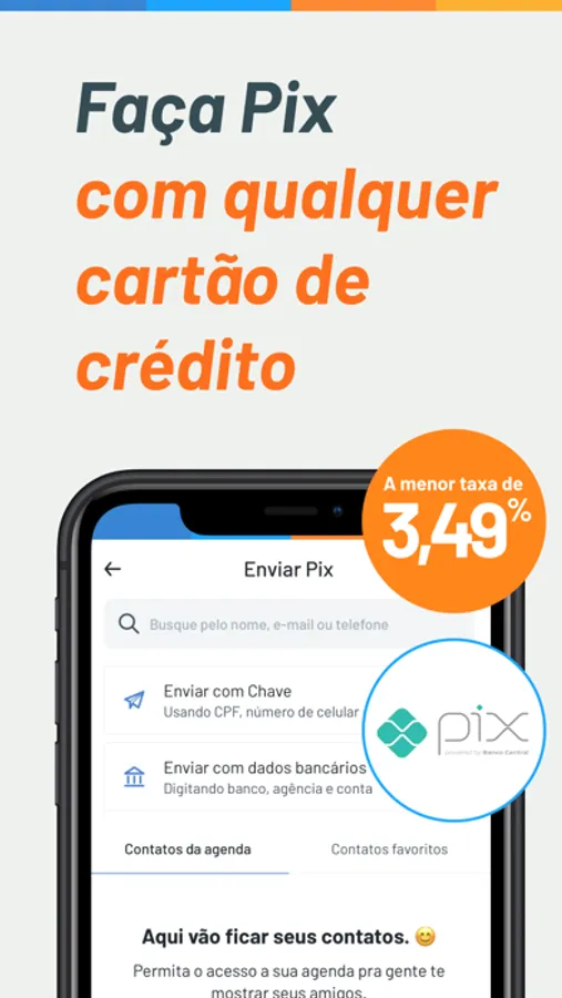 ◉ Pix com cartão de crédito com a menor taxa: apenas 3,49%. Parcele em até 12x!