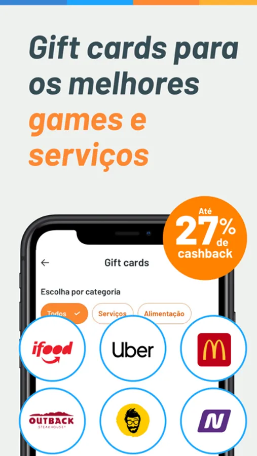 ◉ Até 27% de desconto em Gift Cards, Gás e TV Pré-paga