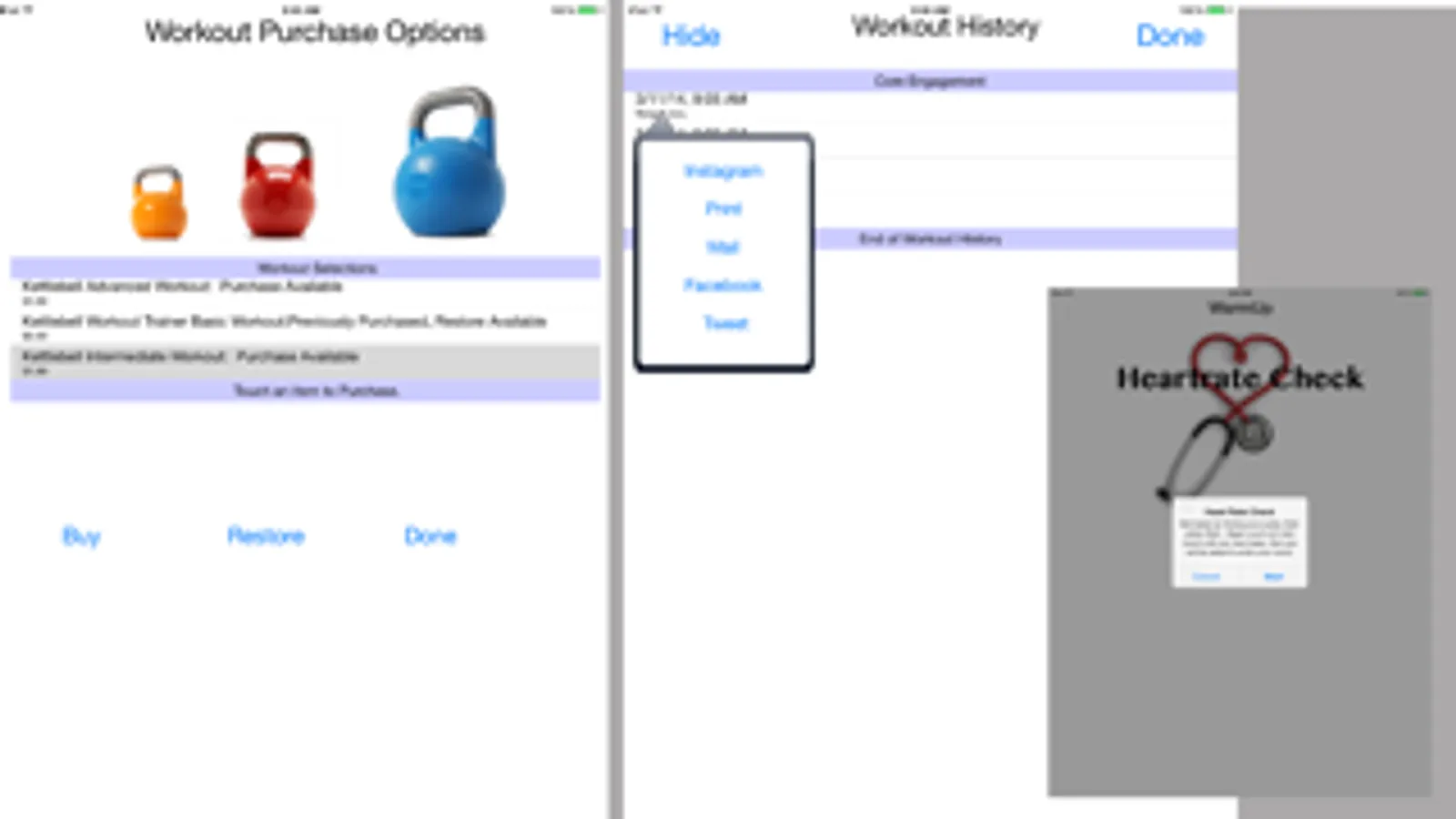 Kettlebell Workout Trainer will teach and lead you thru a set of workouts to improve your core strength and health. It has features designed for beginner thru advanced use. Includes optional video demo for most of the exercises to learn proper form. This app will guide and time you thru specific sets of exercises and in 'Trainer Mode' will automatically sequence you thru the workout. Has heart rate checks that record your rate at key points and workout history is captured and can be shared. Detailed settings for each workout/exercise can be tuned to your needs thru option setting pages. NOTE: The images and demo videos have been limited to low resolution to save space on your device. If interest is shown, a HD version may be developed.