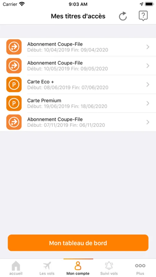 Retrouvez vos commandes de parking, de coupe-file ou de salon VIP dans votre compte.