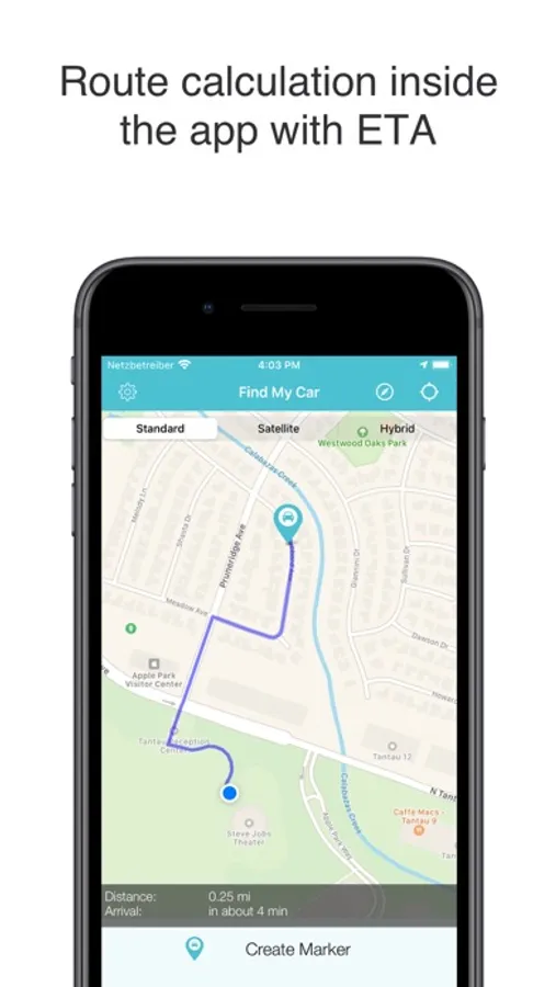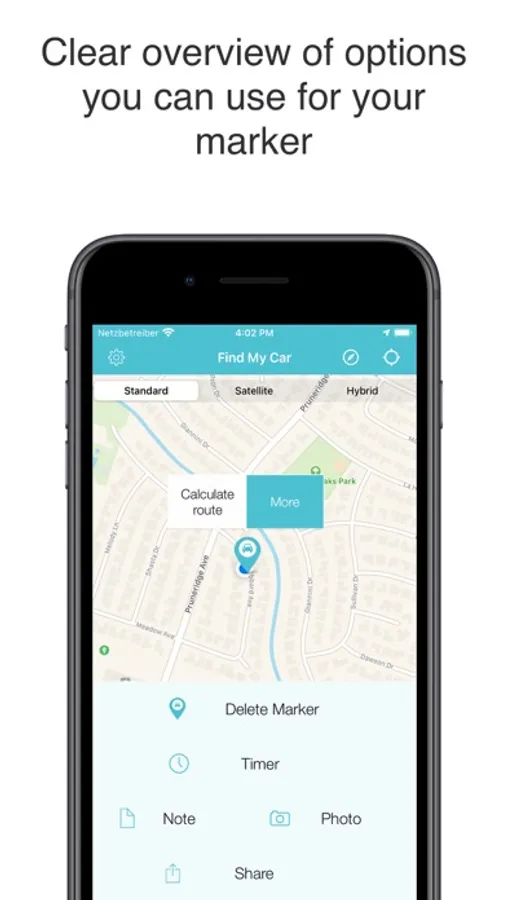 -Calculate and display route between your current position and parking position (optional: Maps, Google Maps, Navigon)