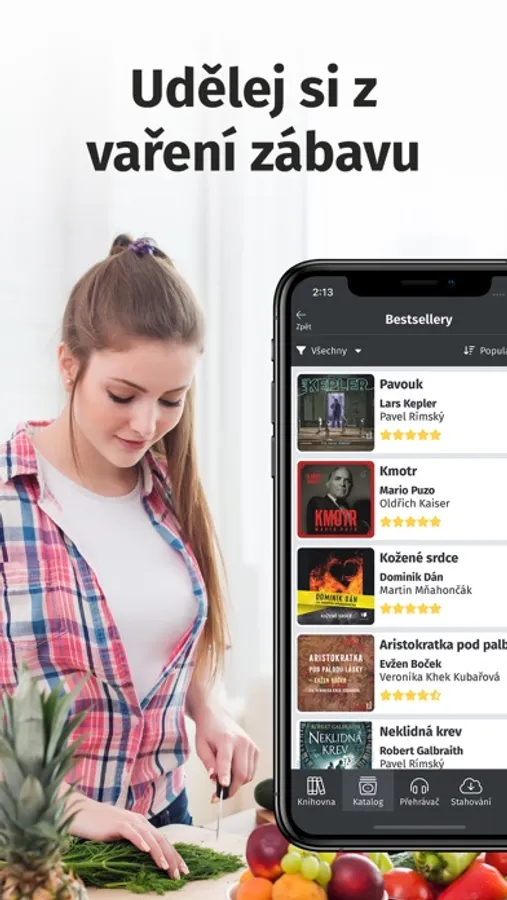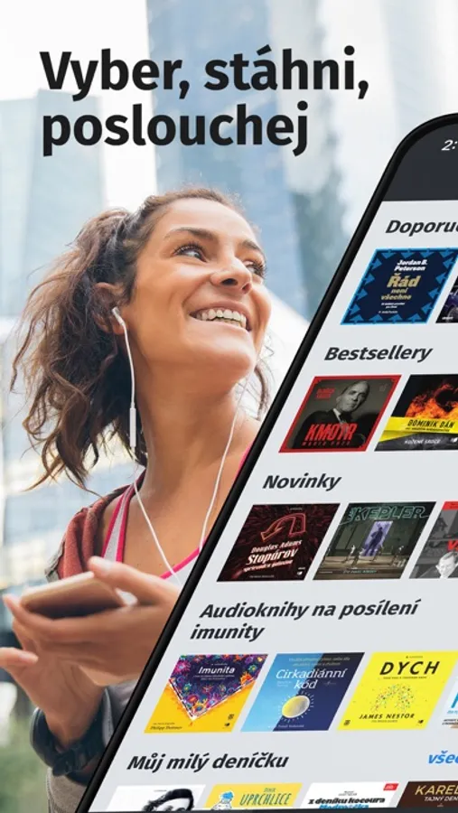 - Možnost vybrat si z katalogu více než 10000 audioknih. Detektivky, historie, osobní rozvoj, filozofie, fantasy, sci-fi... přijdete si na své.