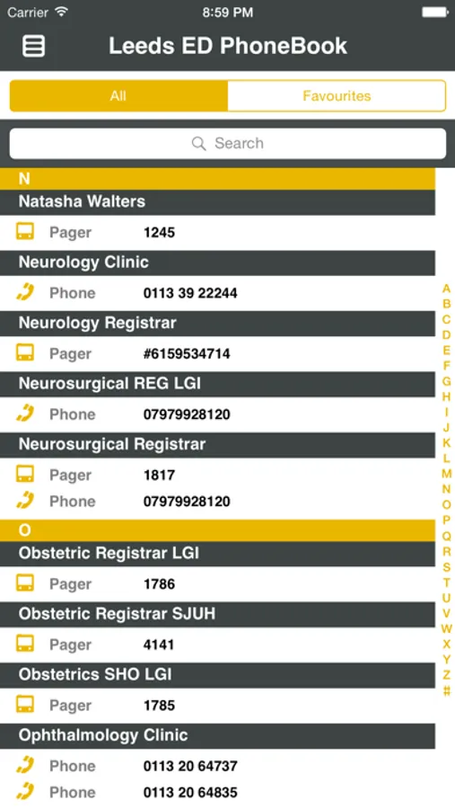 Phone Book houses a shared departmental list of important numbers so that users can contact other team members directly, without first accessing hospital switchboard operators. You can even ask your phone to get the gas man's number in an emergency!