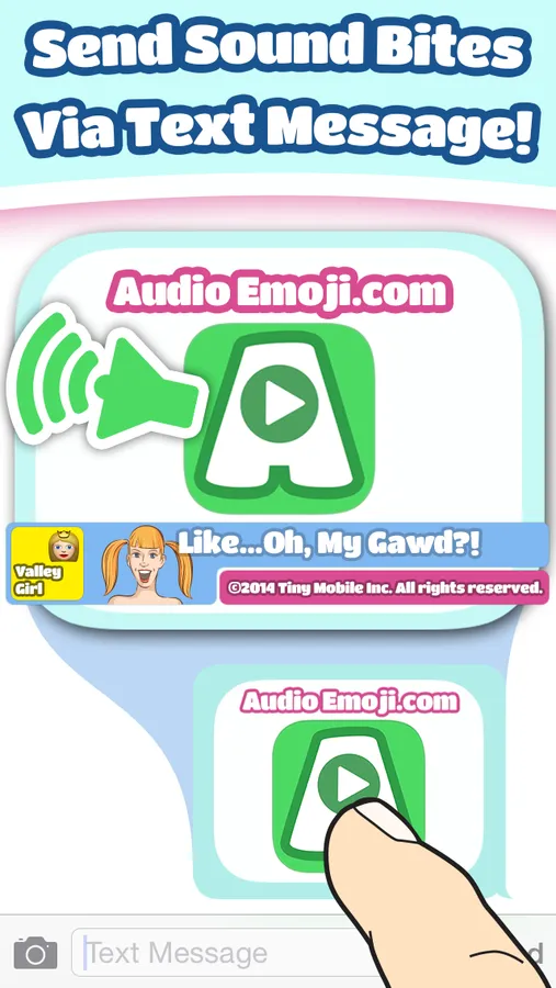 •Tap the Message button on a given Audio Emoji to pop up a text message window, prepopulated with your chosen sound.