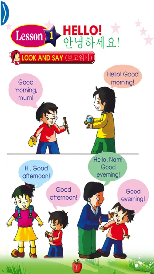 “English for Primary 1 – 초등 영어” 책은 45장에 포함합니다. 손에 스마트 폰을 쥘때 “언제 어디서든 영어 공부” 라고 목적으로 편찬되어 있습니다. 편찬하는 과정에서, 예기치 않은 실수들을 피할 수 없어서 본 책이 더 완료하기 위해 여러분의 귀의를 받을 수 있기 희망합니다. 진심으로 감사드립니다.