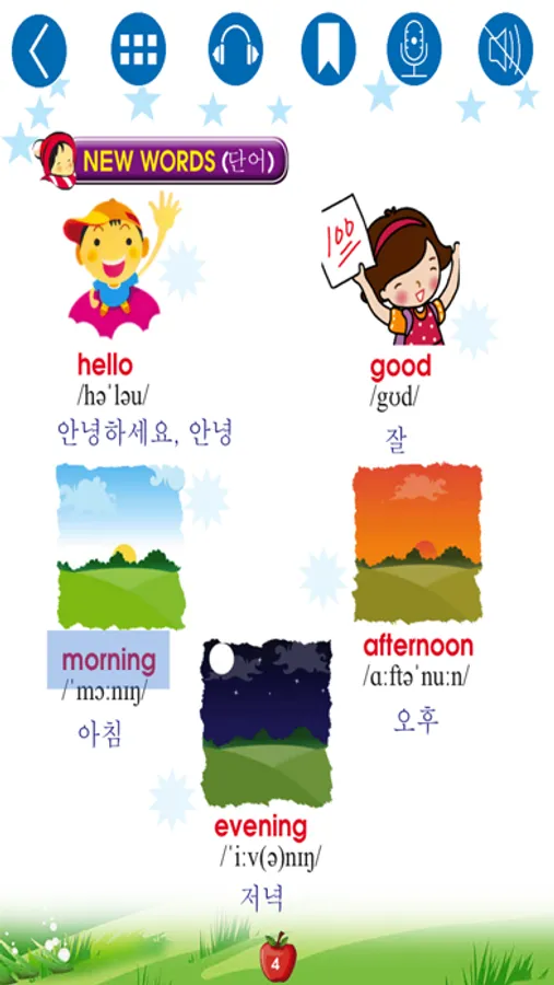 그리고 여러분이 효과적 공부하기 바랍니다. 우리의 책스마트-아이북을 사용할때 편의들: 일반적으로 책(전통책)보다 더 쌉니다. 여러분은 한번에 아이북을 지불할 것입니다. 그다음에 최신의 책을 새롭게 할때 모든 권리를 받을 수 있습니다. 동시에 돈을 더 내지 않고 영원히 사용할 수 있어서 잃어버리거나 찢어지는 것에 걱정하지 않습니다. 책은 음성(audio)이 통합되며 읽을때 각 문장을 표시합니다. 그래서 다시 듣고 싶을때 그 문장에 손대하면 다시 듣기 위해 기성발할 것입니다. 또는 아이북도 발음을 녹음할 수있습니다 (읽기 연습하는 발음). icon Micro (icon Recorder)를 누르는 방법으로 실현할 수있습니다. icon Headphone (listen and write – 듣고 쓰기)를 누를때 기능 많은 화면을 나타날 것입니다. 그래서 여러분은 듣고 자판이나 손으로 듣은 문장을 다시 쓸 수있습니다. 이것은 디지털 시대에서 우리의 획기적인 한 발명입니다. 이 아이북은 여러분에게 외국어를 배우고 책을 편리하게 읽기를 도와 줄 것입니다.