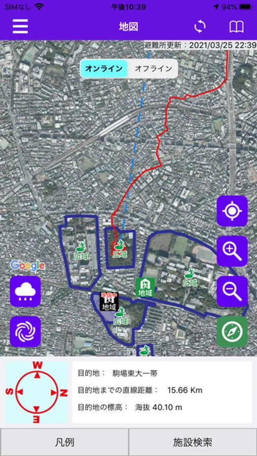 あらかじめインストールしておくことで、インターネット通信ができない状態でも、地図情報を表示したり、GPS機能を使って避難所への方向を確認することができます。