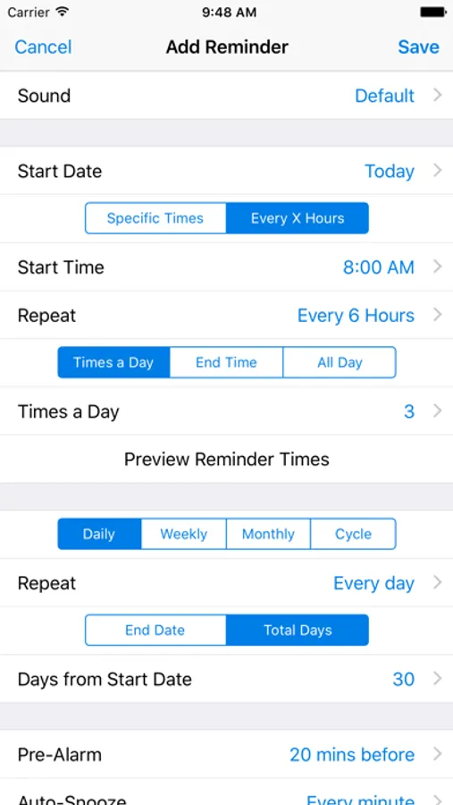 Pill Reminder is an easy-to-use and reliable app that helps you remember to take your medications at the right time. It allows you to create any type of recurring reminders (every X hours, specific times, daily, weekly, monthly, every X days, etc). It tracks the remaining quantity of each medication and shows a refill alert when running low.