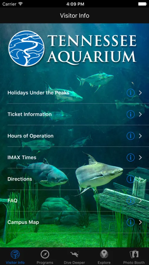 The Tennessee Aquarium's free App, powered by Tennessee Tech University, helps you plan your visit, make the most of your aquatic adventure and helps you share highlights with family and friends. And, we hope you’ll enjoy many of the App’s features after your visit.