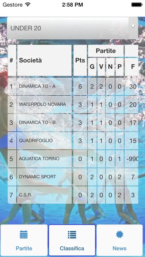 Risultati in tempo delle partite di Pallanuoto in Piemonte