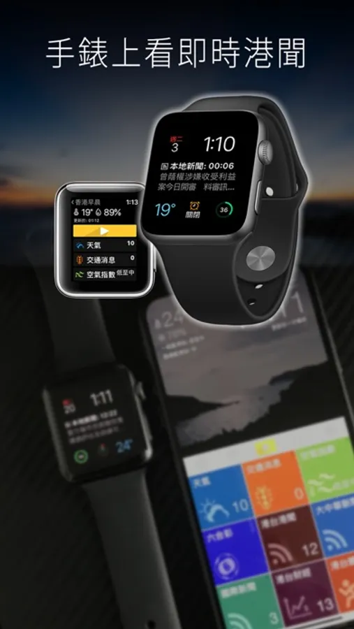 - Complications (錶面) : 顯示二小時內的新聞,空氣質數健康指,天氣預報