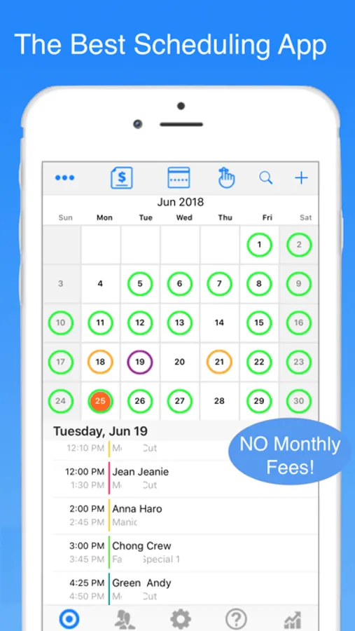 Scheduler - Your calendar on steroids. Select client names from your contacts and add the service information to the appointment. Create reminders, complete and checkout the client, view contact management info and send appointment confirmations. All right from the scheduled appointment. View multiple calendars, set alerts, repeating appointments and search history.