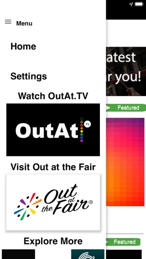 Features include: Community & Nightlife Calendars, Audio, Out at the Fair®, On the Rocks, Who Invited Her Podcast?, Bear World Magazine, Community Notifications, radio, OutAT TV on-demand content and LIVE TV.