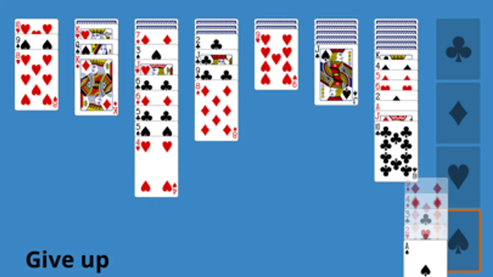 The goal is to move all cards to the four foundations at the right by suit from A to K.