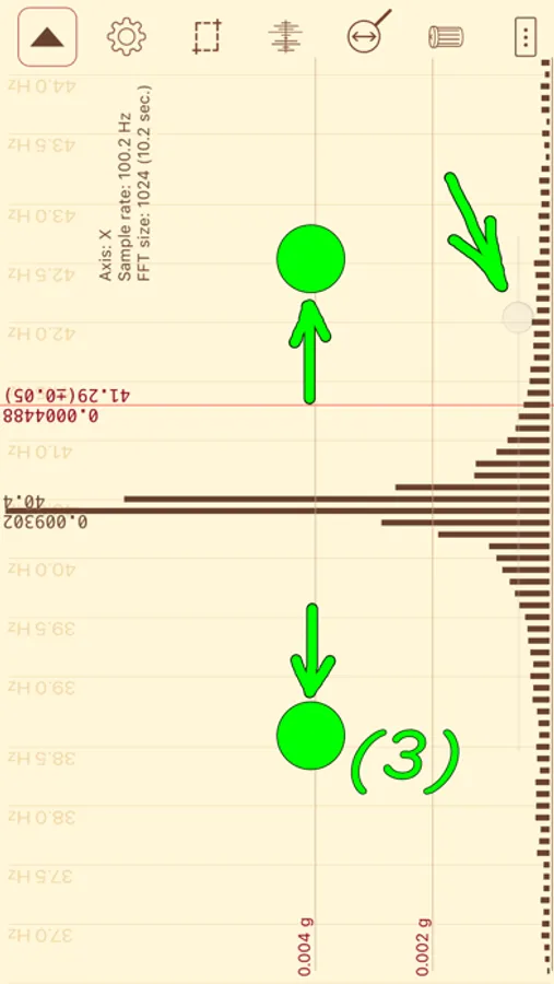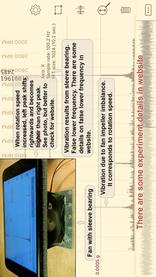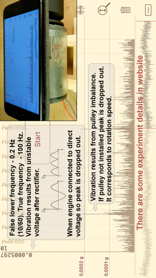 BE SURE TO READ THE EXAMPLES OF THE VIBRATION SPECTRUM ANALYSIS AT THE APPLICATION WEB SITE (usefulmobileapps.com).