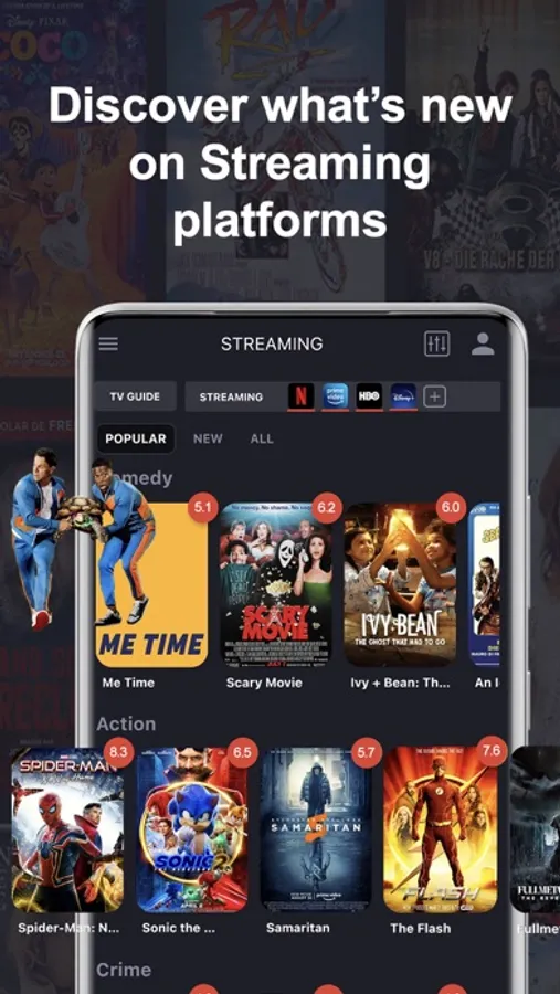 • Select your Streaming provider to find out what is new on Netflix, Prime Video, Disney+, HBO Max and other Streaming platforms - all in one app!