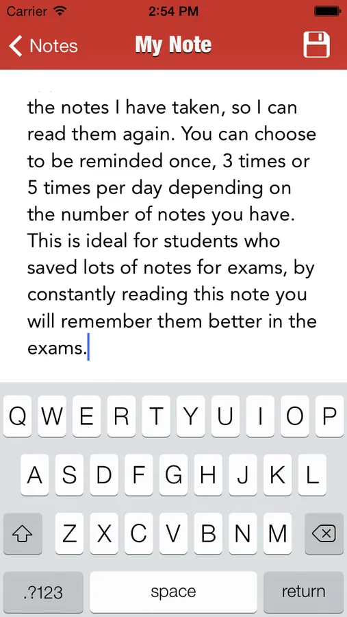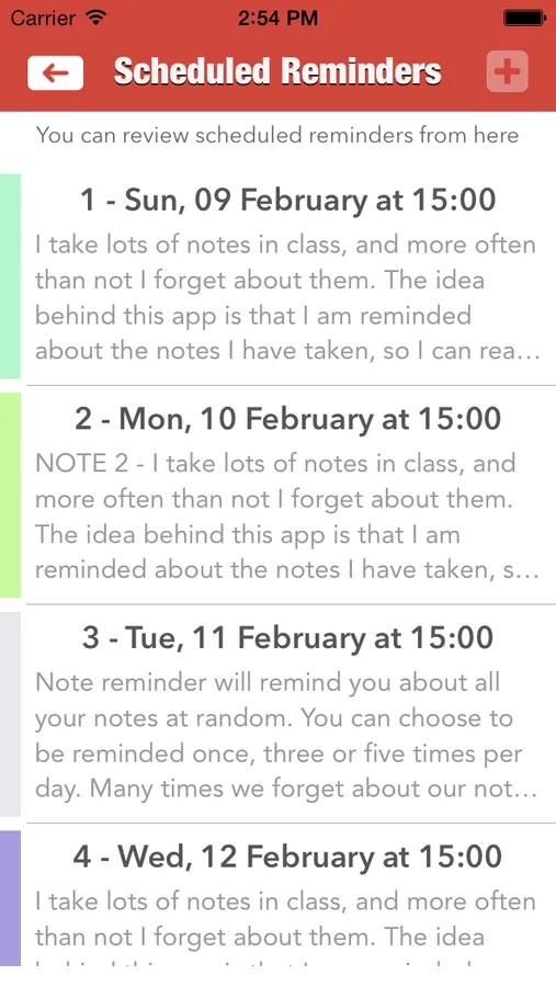 I take lots of notes in class, and more often than not I forget about them. The idea behind this app is that I am reminded about the notes I have taken, so I can read them again. You can choose to be reminded once, 3 times or 5 times per day depending on the number of notes you have. This is ideal for students who saved lots of notes for exams, by constantly reading this note you will remember them better in the exams. The note that will be presented is selected randomly so you get to read most of your notes. You can group your notes for different courses you are taking. Also there’s a screen where you can see all the scheduled reminders, this is ideal for when you have free time you can read your notes selected for you at random.This i Download it now.