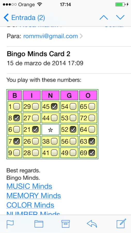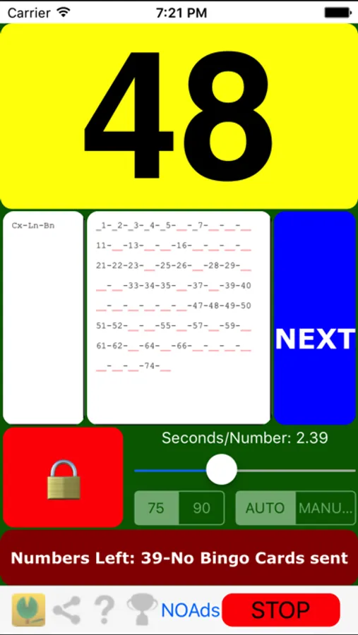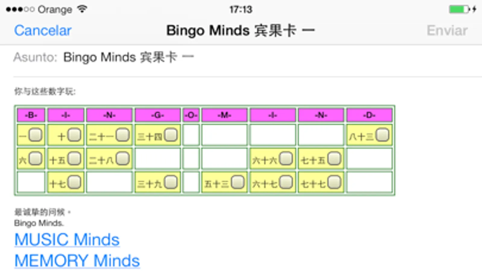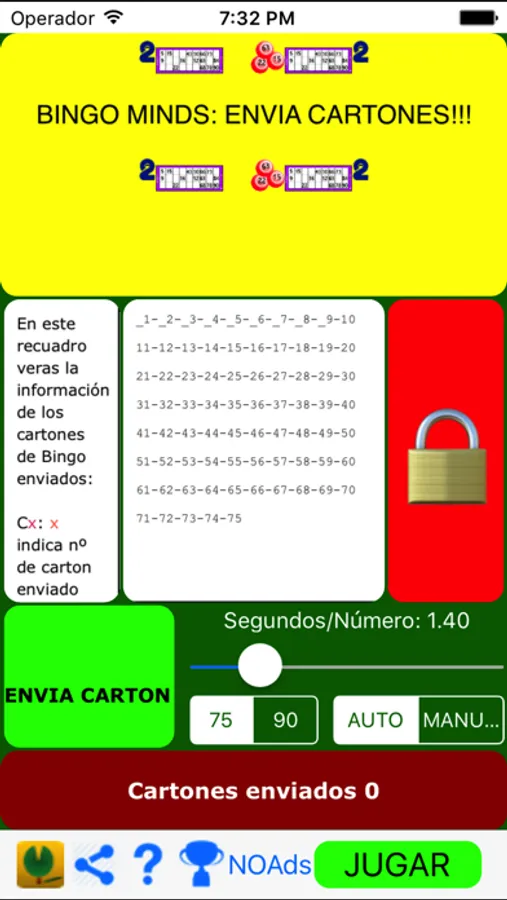 The App checks the numbers of the Bingo Cards sent and the result are shown on the screen.