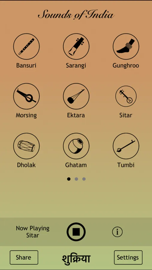 Listen to the sounds of Sitar, Sarod, Tabla, Gunghroo, Veena and 20+ other classical music instruments from India.