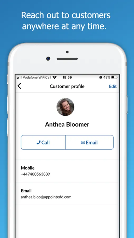 This mobile app integrates with the Appointedd software to give you an overview of your calendar, allow you to create new bookings, breaks and customer records, and reschedule or cancel bookings when you're on the move.