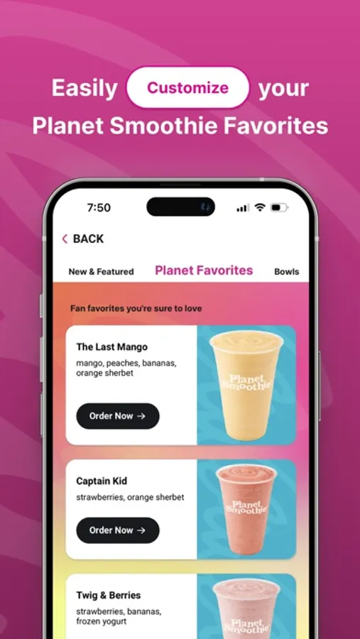 It takes a lot to be called the best-tasting smoothie on the planet!® Planet Smoothie offers over 30 varieties of real fruit smoothies blended fresh to order. With lower-calorie and higher-protein options, you’re sure to find something on the menu to fit your lifestyle.