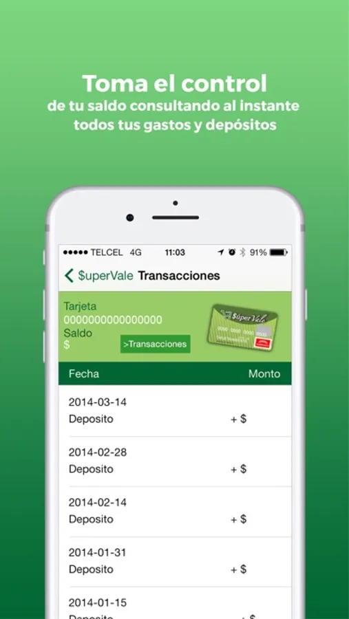 La aplicación de Super Vale te permitirá de una forma rápida y segura consultar desde cualquier dispositivo móvil tu saldo disponible y las últimas transacciones realizadas para tener al instante un mejor control.