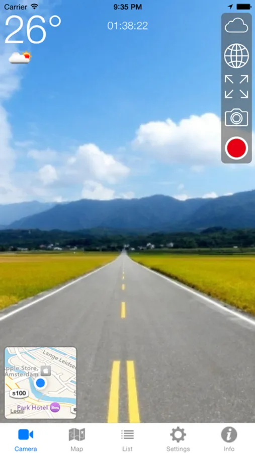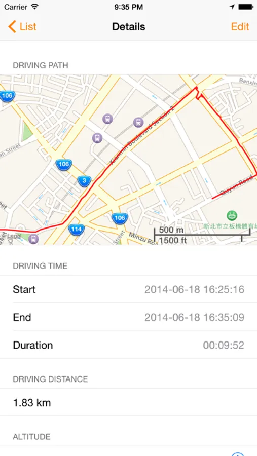 1) This app could not only record images while driving but also record various driving data, such as driving distance, speed, acceleration, driving path, coordinates, altitude, address and driving time.