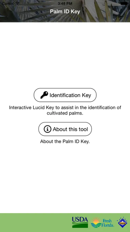 Palm ID Key is designed to help users identify cultivated palms. The ability to identify a palm host is an important aid to pest and disease identification, as many diseases and pests may be host specific. Palm ID Key supports users that may only have a portion of a complete representative sample of a plant. This key allows users to identify many specimens to species, though this is not possible in all cases, as many palms are capable of hybridizing.