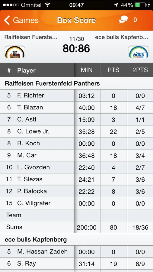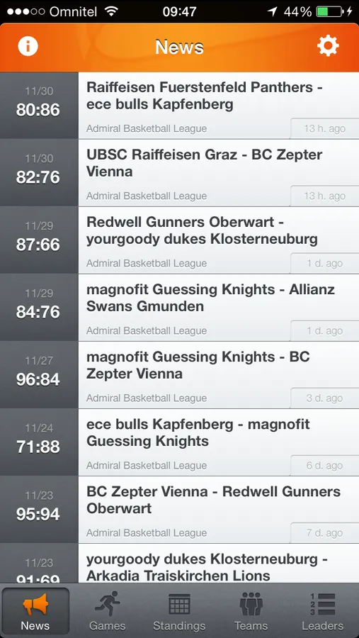 ABL Live! is the official mobile application of “Admiral Basketball Bundesliga" league (Austria).